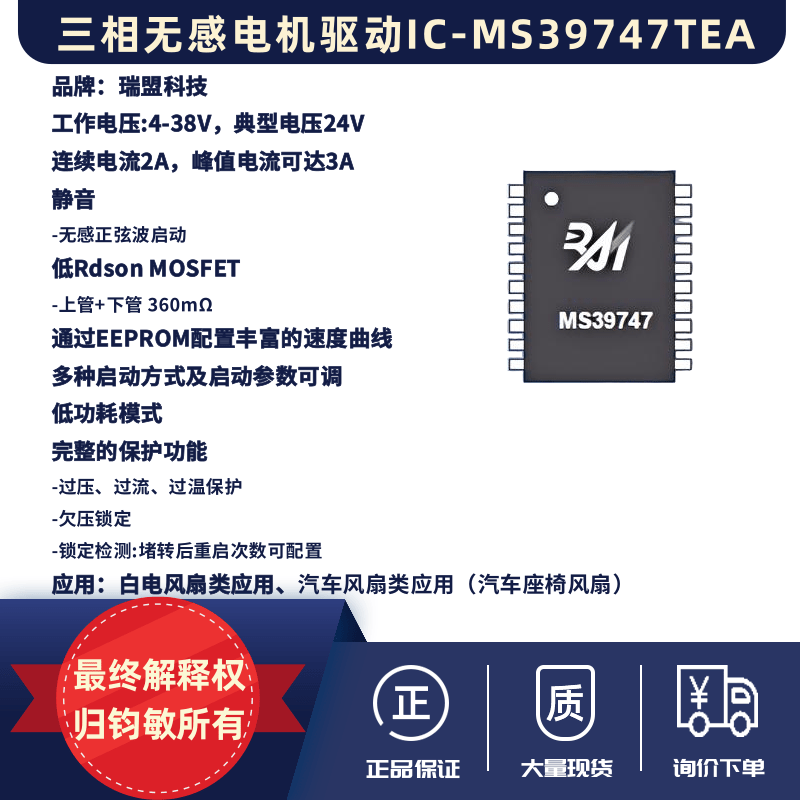![]() | Introduction to MS39747TEAThe MS39747TEA is a three-phase motor driver IC integrated with sensorless sinusoidal drive. When applied to most fan-driven scenarios, it can minimize fan vibration. The sensorless control eliminates the need for Hall sensors in fan applications. The MS39747TEA incorporates a flexible closed-loop speed control system internally. Its EEPROM allows customization of fan speed curves tailored to specific applications. Once programmed, the IC can operate independently without relying on a microprocessor. |