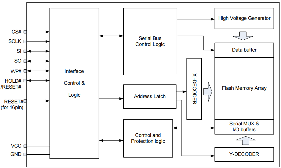 -标准SPI:SCLK、CS#、SI、SO、WP#、HOLD#