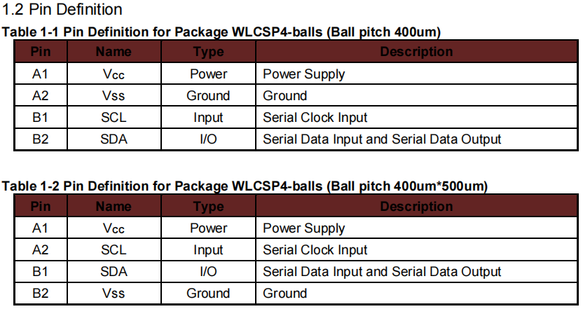  4-balls WLCSP.球距400umx500um