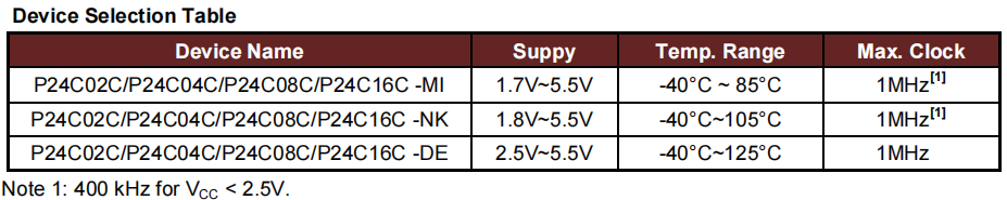‣ 1.7V至2.5V供电时支持400kHz时钟频率