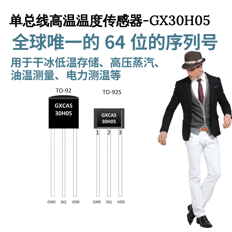 ![]() | 芯片概述: GX30H05 数字温度计提供 9 到 12bit 分辨率的温度测量,可以通过可编程非易失性存储单元实现温度的下限和上限警。 GX30H05 采用单总线协议与上位机进行通信,只需要一根信号线和一根地线。它的温度测量范围为-80℃~ +200℃。在-10℃~+80℃范围内的测试精度可以达到±0.5℃。此外它还可以工作在寄生模式下,直接通过信号线对芯片供电,从而不需要额外的供电电源。每个 GX30H05 都有一个全球唯一的64 位序列号,可以将多个 GX30H05 串联在同一跟单总线上进行组网,只需要一个处理器就可以控制分布在大面积区域中的多颗 GX30H05。 这种组网方式特别适合 HVAC 环境控制,建筑、设备、粮情测温和工业测温以及过程监测控制等应用领域。 |