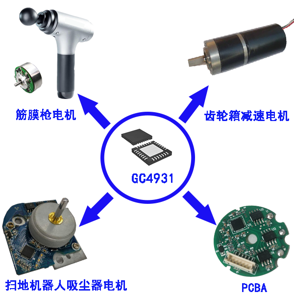| 芯片应用: 1.筋膜枪电机 2.扫地机器人电机 3.吸尘器电机 4.齿轮箱减速电机 |