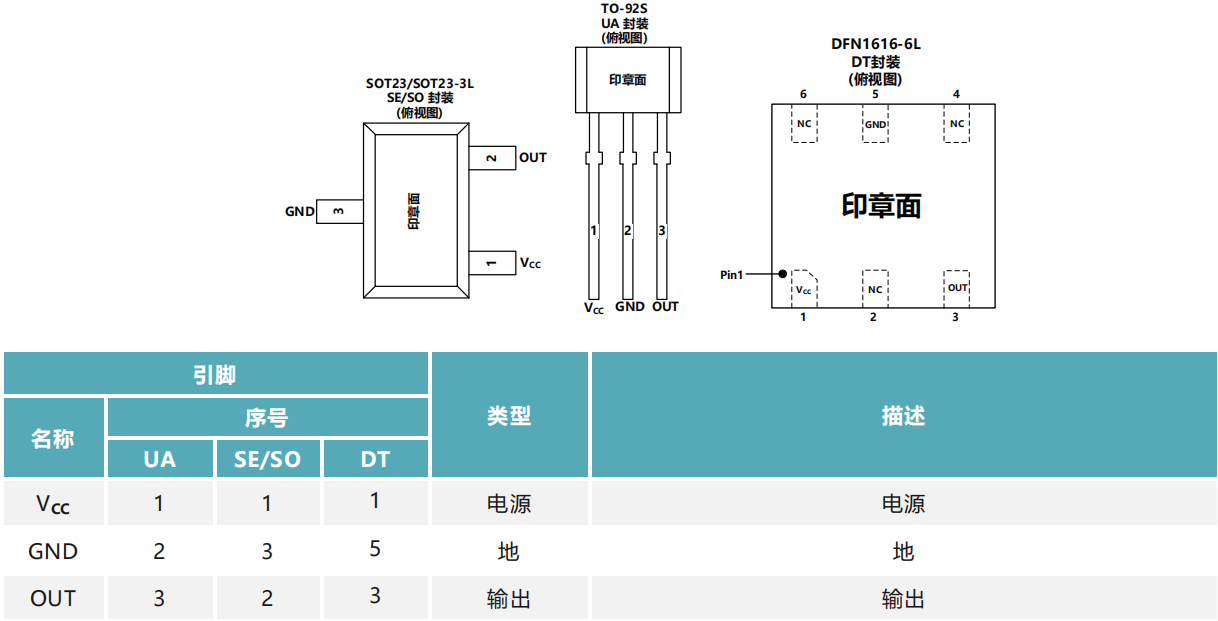 绿色环保 SOT23-3L,SOT23,TO-92S 和DFN1616-6L 封装形式