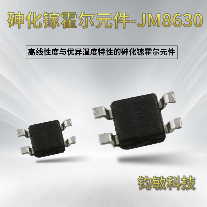 | JM8630 is a gallium arsenide (GaAs) Hall element with high linearity and excellent temperature characteristics, which can replace Asahi Kasei's HG-166A. The gallium arsenide (GaAs) material features high sensitivity, over eight times that of silicon (Si) material. Additionally, its sensitivity exhibits minimal variation with temperature, ranging from 0.03% to 0.05% per degree. It is mainly used in linear sensing applications and can also be applied in high-end switch sensing applications. The gallium arsenide (GaAs) Hall element boasts outstanding properties such as high sensitivity, extremely low temperature drift coefficient, a magnetic field linear dynamic range of up to 2T, and zero hysteresis. It comes in a thin SSOT-4 package, making it highly suitable for current and displacement sensing applications. It is a typical application in displacement monitoring for consumer electronics, such as displacement sensing in camera modules. It is packaged in a tape and reel format, with 4,000 units per reel.