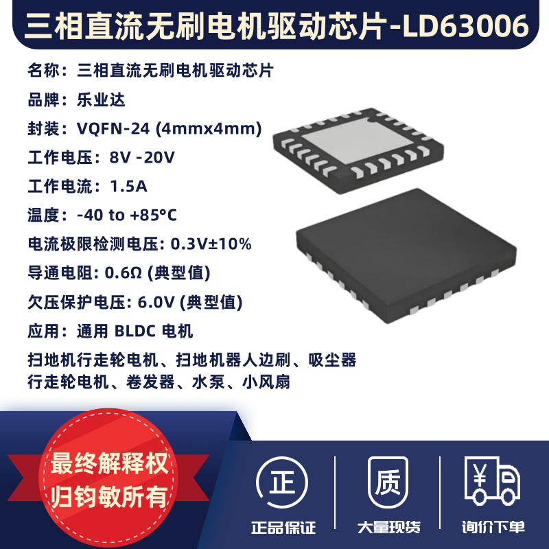 应用:通用 BLDC 电机、扫地机行走轮电机、扫地机器人边刷、吸尘器行走轮电机、卷发器、水泵、小风扇