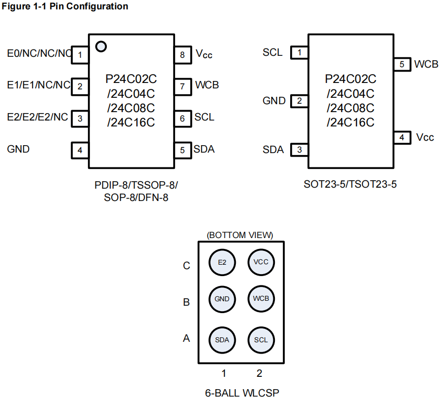 ![]() | 芯片描述: P24C02C/P24C04C/P24C08C/P24C16C是2/4/8/16-Kbit I²C兼容串行电可擦除可编程存储器(EEPROM)器件。 该系列包含256/512/1024/2048×8位的存储阵列,每页容量为16字节。 P24C02C/P24C04C/P24C08C/P24C16C为不同应用场景提供以下器件选择。